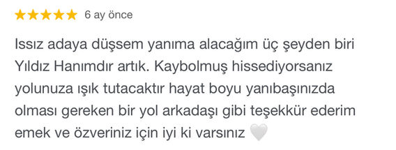 Değerli danışanlarımızın geri bildirimleri, sunduğumuz psikolojik danışmanlık hizmetlerinin kalitesini artırmamıza ve size en iyi şekilde hizmet vermemize yardımcı oluyor. Aşağıda, İzmir'deki psikolog, çocuk-ergen psikoloğu, pedagog ve çift danışmanlığı gibi çeşitli alanlarda sunduğumuz hizmetler hakkında danışanlarımızın bizlere ilettikleri olumlu yorumları bulabilirsiniz.